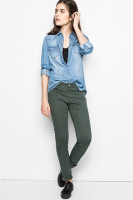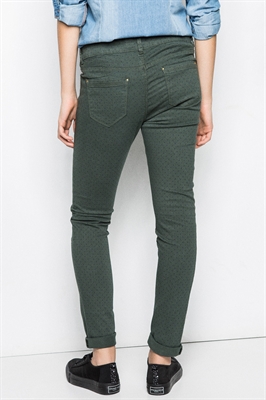 Pantalón estampado con topitos, con bolsillos laterales y traseros. Con pierna skinny fit.