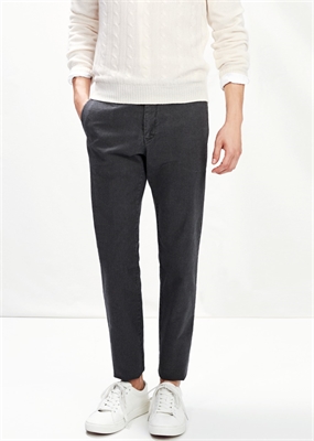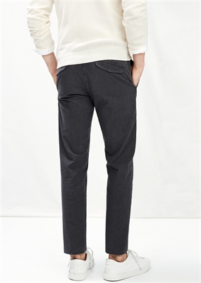 Pantalón de micro pata de gallo confeccionado en algodón que pertenece a la línea casual. Dos bolsillos laterales, bolsillo portamonedas y dos bolsillos de solapa en la parte posterior. Trabilla con botón y cierre de cremallera.