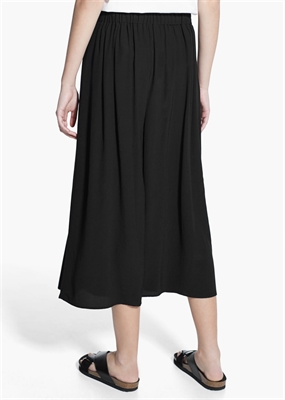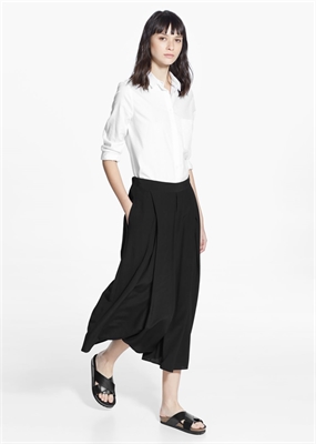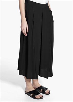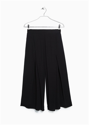 Pantalón palazzo fluido con detalle de pliegues en la parte delantera, dos bolsillos laterales y elástico en la parte posterior de la cintura.