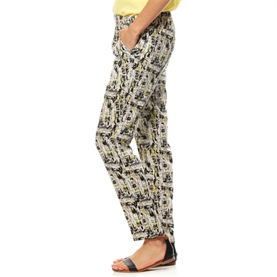 Consigue un look ligero y chic con este pantalón vaporoso. - Pantalón recto vaporoso - Cintura elástica - 2 bolsillos de parche - Estampado por toda la prenda - Largo de la entrepierna: 72 cm - Ancho del bajo: 16 cm. Nuestra modelo lleva una talla 38 y mide 1,77 metros.100% poliesterSe puede lavar a máquina.