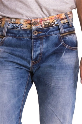 Unos jeans claros y de corte regular de estilo explorador. Fíjate en las cremalleras y en el estampado de la doble cintura y de los bolsillos traseros. El interior es muy suave y cómodo. Nuestro denim, no es lo mismo.
