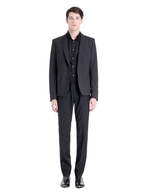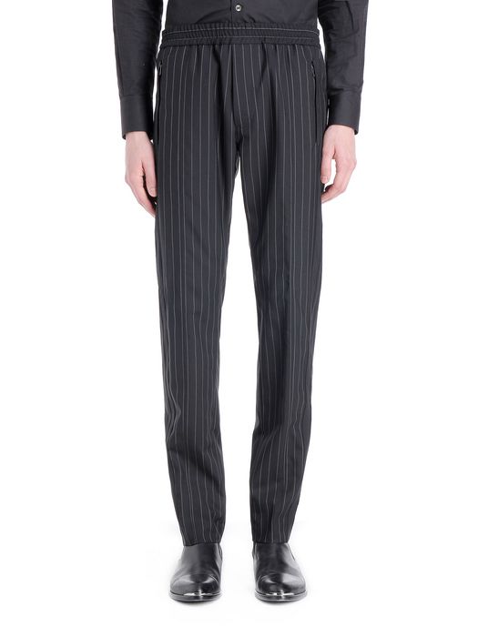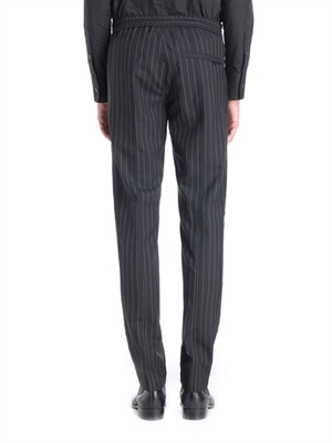 Large pin stripe cool wool pant with elastic on waist band and stripes in contrast fabric.Leg opening: 17 cm.