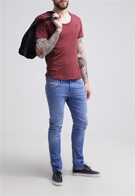 contiene partes no textiles de origen animalLargo:normalAjuste:slim fitLargo entrepierna:79 cmMaterial/composición:vaqueroModelo, altura:190 cm, lleva la talla 31x32Largo exterior de la pierna:99 cmCierre:cremallera invisibleBolsillos:traseros, lateralesCintura:bajoMaterial exterior:83% algodón, 15% poliéster, 2% elastanoCuidados:lavar a máquina a 40 °C, no utilizar secadoraNúmero de artículo:TO722G02E-K11
