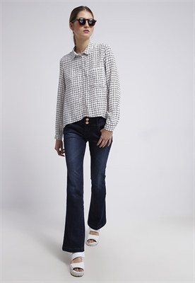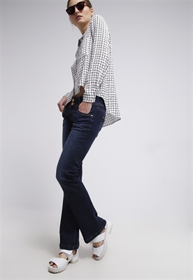 Largo:normalAjuste:bootcutLargo entrepierna:84 cmMaterial/composición:vaqueroModelo, altura:179 cm, lleva la talla 38Ocasión:tiempo libreLargo exterior de la pierna:106 cmCierre:cremallera invisibleBolsillos:traseros, lateralesCintura:bajoMaterial exterior:98% algodón, 2% elastanoCuidados:no utilizar secadora, lavar a máquina a 30°C, programa delicadoNúmero de artículo:M5921N007-K11