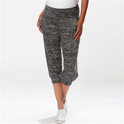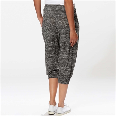 Confeccionado en un punto ligero muy cómodo. - Pirata de punto vaporoso - Cintura elástica - 2 bolsillos superpuestos - Frunces en el bajo - Punto torcido - Largo de la entrepierna: 55 cm - Ancho del bajo: 17 cm Nuestra modelo lleva una talla 38/40 y mide 1,77 metros.58% viscosa,39% poliester,3% elastanoSe puede lavar a máquina.