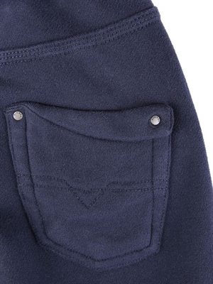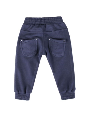 Five pocket set, fabric dyed heavy fleece without inside brush, logo detail.