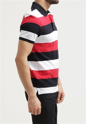 Largo:normalModelo, altura:185 cm, lleva la talla MEstampado:de rayasLargo de la prenda:69 cmCuello:poloLargo de manga:cortaMaterial exterior:100% algodónCuidados:lavar a máquina a 40 °C, no utilizar secadoraNúmero de artículo:LY222P007-G11