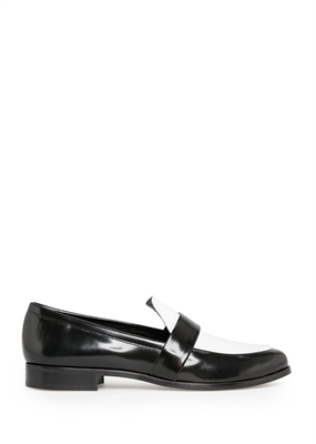Mocasín bicolor estilo masculino en efecto piel antic que pertenece a la línea Premium. Plantilla de piel y suela de goma.