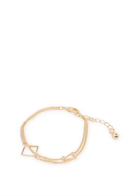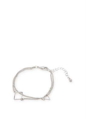 Pulsera de doble cadena fina con adornos geométricos. Cierre de cadena y mosquetón.