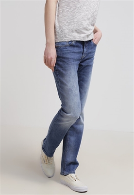 contiene partes no textiles de origen animalLargo:normalLargo entrepierna:77 cmMaterial/composición:vaqueroModelo, altura:180 cm, lleva la talla 28x30Largo exterior de la pierna:100 cmCierre:cremallera invisibleBolsillos:traseros, lateralesCintura:normalMaterial exterior:98% algodón, 2% elastanoCuidados:lavar a máquina a 40 °C, no utilizar secadora, programa delicadoNúmero de artículo:2CR21A01N-K12