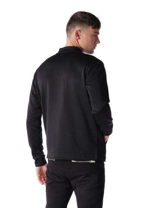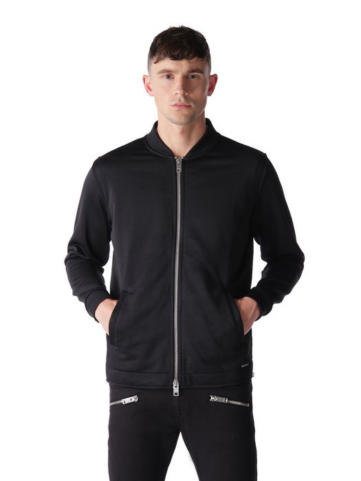 Ribbed collar, long sleeves, zip/zipped opening, rib knit cuffs and hem, logo detail.