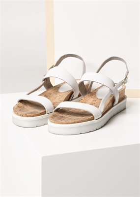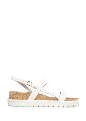 Sandalia flatform de piel con tiras en la parte delantera y tira posterior con cierre de hebilla. Cuña de corcho y suela de goma dentada.