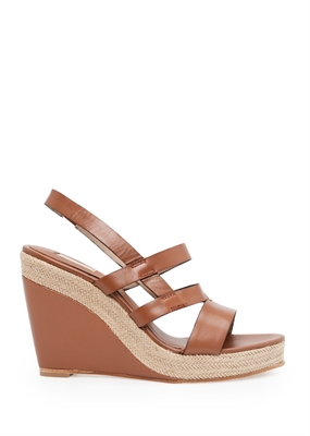 Sandalia de tiras en piel con plataforma de esparto y cuña en piel.