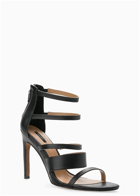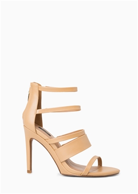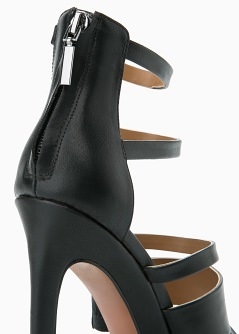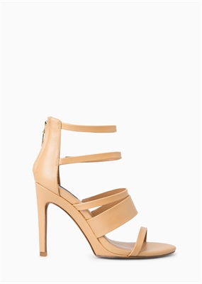 Sandalia con múltiples tiras decorativas, cierre de cremallera en la parte posterior y tacón de aguja forrado. El tacón mide 10,5 cm.