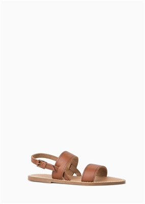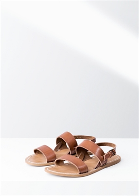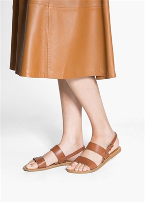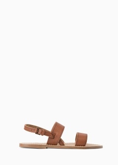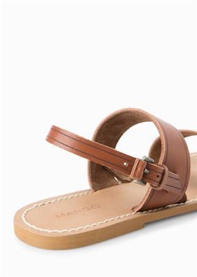 Sandalia con doble tira de piel, tira en el tobillo y cierre de hebilla.