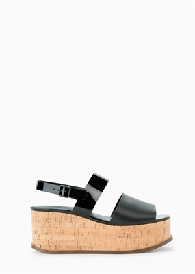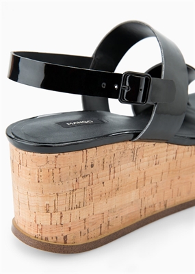 Sandalia con dos tiras anchas y pulsera en el tobillo con cierre de hebilla. Plataforma en contraste que mide 6,5 cm.