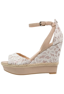 Plantilla:cueroMaterial interior:pielForma del tacón:cuña, plataforma planaAltura del tacón:10 cmAltura de la plataforma:3.5 cmDetalle:pieza elásticaCierre:hebilla/cordonesPuntera:abiertaSuela:fibra sintéticaMaterial exterior:piel de imitación/telaNúmero de artículo:GU111L01B-B11