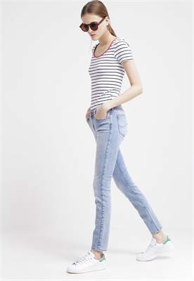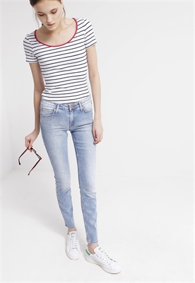 contiene partes no textiles de origen animalLargo:normalAjuste:slim fitLargo entrepierna:78 cmMaterial/composición:vaqueroModelo, altura:179 cm, lleva la talla 28x33Ocasión:tiempo libreLargo exterior de la pierna:99 cmCierre:cremallera invisibleBolsillos:traseros, lateralesEstampado:unicolorCintura:bajoMaterial exterior:92% algodón, 6% elastomultiester , 2% elastanoCuidados:lavar a máquina a 30°CNúmero de artículo:LE421N00T-K13