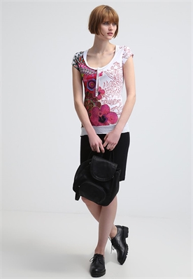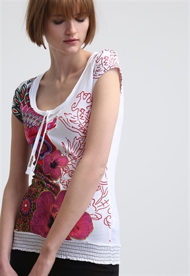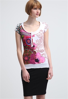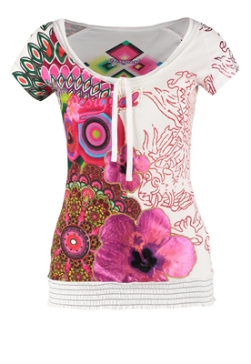 Largo:normalAjuste:ceñidosMaterial/composición:jerseyModelo, altura:180 cm, lleva la talla SCuello/escote:ovaladoOcasión:tiempo libreEstampado:multicolorLargo de la prenda:61 cmLargo de manga:manga extracortaMaterial exterior:50% algodón, 50% viscosaCuidados:lavar a manoNúmero de artículo:DE121D0AV-A11