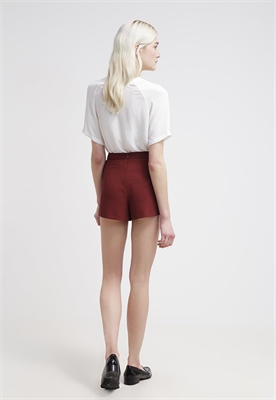 Largo:cortaAjuste:normalLargo entrepierna:7 cmModelo, altura:181 cm, lleva la talla 36Largo exterior de la pierna:33 cmCierre:cremalleraBolsillos:lateralesEstampado:unicolorCintura:altoMaterial exterior:98% poliéster, 2% elastanoCuidados:lavar a máquina a 40 °C, no utilizar secadora, programa delicadoNúmero de artículo:MF921S00M-O11