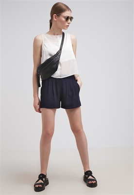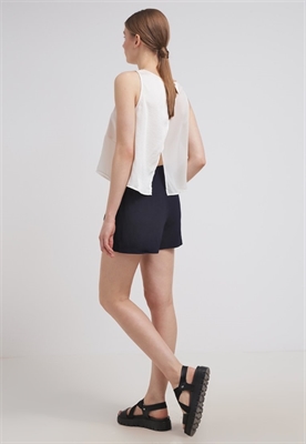 Largo:cortaLargo entrepierna:6 cmModelo, altura:175 cm, lleva la talla 36Largo exterior de la pierna:32 cmBolsillos:lateralesEstampado:unicolorDetalles:cintura elásticaCintura:normalMaterial exterior:100% viscosaCuidados:no utilizar secadora, lavar a máquina a 30°C, programa delicadoNúmero de artículo:M3221S00D-K14
