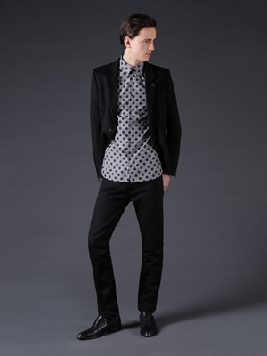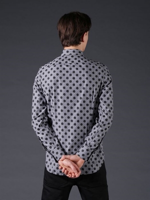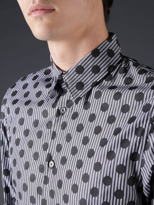 Contrast patterns in dots and stripes are a contemporary finish on a classic cotton poplin shirt.