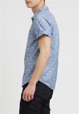 Largo:normalCierre:botónMaterial/composición:vaqueroAncho de la espalda:42 cmModelo, altura:188 cm, lleva la talla MEstampado:estampadoLargo de la prenda:72 cmCuello:kentLargo de manga:cortaMaterial exterior:100% algodónCuidados:no utilizar secadora, lavar a máquina a 30°C, programa delicadoNúmero de artículo:KH122D01I-K11