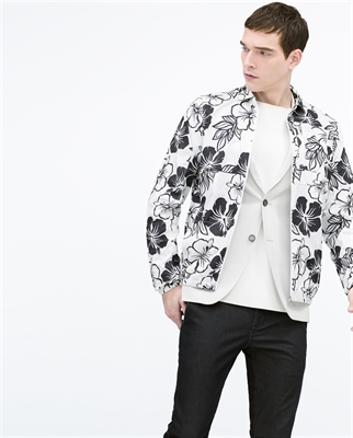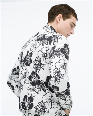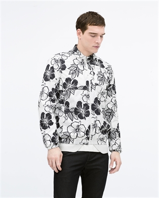 Sobrecamisa estampada de manga larga. Bolsillo exterior con cremallera y bolsillos laterales. Cierre con cremallera. Elástico en bajo y puños Altura modelo: 189 cm. Talla L
