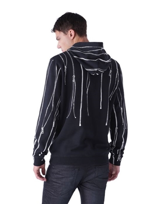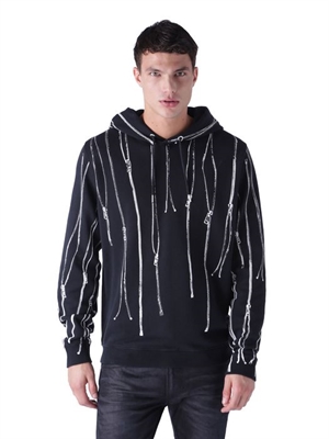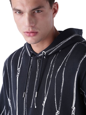 Zippers in an all-over print.Hooded neck, long sleeves, zip details.