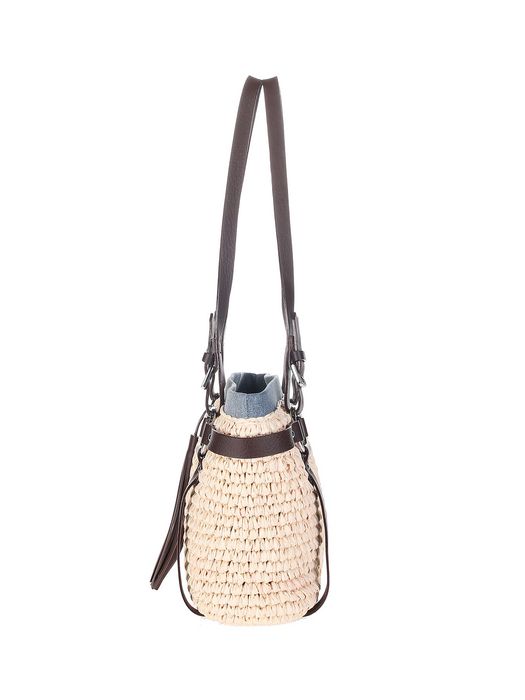 Shopping bag, denim detail, metal rivet.This item's measurements are:Lenght 24 cm/ 9,4 inHeight 22 cm/ 8,6 inWidth 11 cm/ 4,3 in