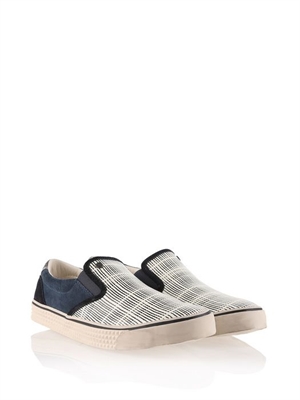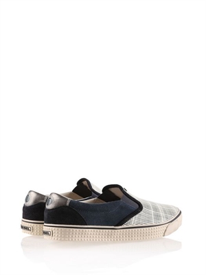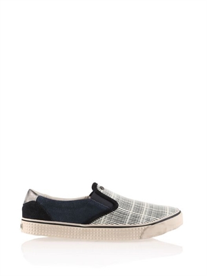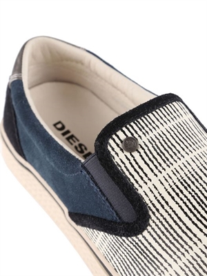 Printed leather-and-suede slip-ons with artwork-printed pattern.Sneaker mid, vulcanized sole, logo detail.
