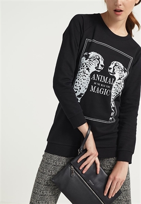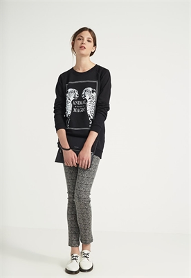 Largo:largoAjuste:normalMaterial/composición:tejido de algodónModelo, altura:176 cmCuello/escote:cuello redondoOcasión:fiesta, tiempo libreEstampado:estampadoLargo de la prenda:73 cmLargo de la manga:64 cmLargo de manga:manga largaMaterial exterior:85% algodón, 15% viscosaCuidados:no utilizar secadora, lavar a máquina a 30°C, programa delicadoNúmero de artículo:EV421J03S-Q11