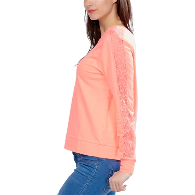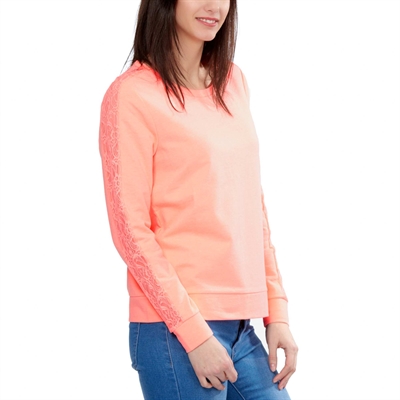 Para esos días en los que buscas un look relajado a la par que femenino. - sudadera de felpa- Cuello redondo - Manga larga - Apliques de encaje en las mangas - Largo de espalda: 63 cm Nuestra modelo lleva una talla M y mide 1,77 m.56% poliester,44% algodonLavable a máquina.