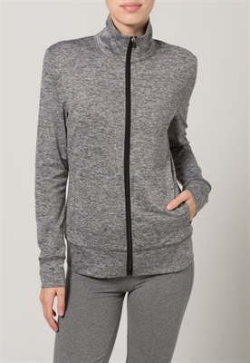 Modelo, altura:177 cm, lleva la talla 38Estampado:jaspeadoLargo de la prenda:63 cmLargo de la manga:63 cmLargo de manga:manga largaCuello:alzadoCierre:cremallera frontal completaBolsillos:laterales con cremallerasPuño:elásticaFunción:transpirableDeporte:fitness, yoga/pilatesMaterial exterior:92% poliamida, 8% elastanoCuidados:lavar a máquina a 30°CNúmero de artículo:2VE41G00A-C11