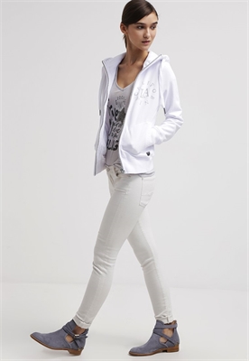 Largo:normalAjuste:normalCierre:cremalleraDetalle capucha:con cordónMaterial/composición:tejido de algodónModelo, altura:174 cm, lleva la talla SOcasión:tiempo libreEstampado:estampadoLargo de la prenda:55 cmCuello:capuchaLargo de la manga:65 cmLargo de manga:manga extralargaMaterial exterior:80% algodón, 20% poliésterCuidados:lavar a máquina a 30°C, no planchar, programa delicadoNúmero de artículo:TR121J017-A11