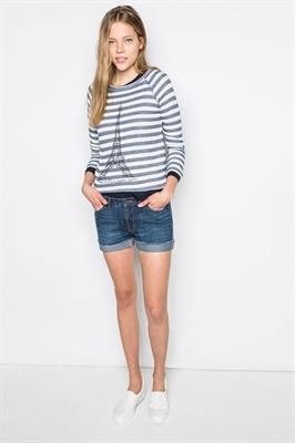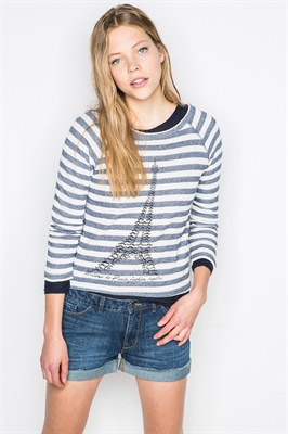 Sudadera de rayas con dibujo de la Torre Eiffel.- Cuello redondo.- Manga larga.