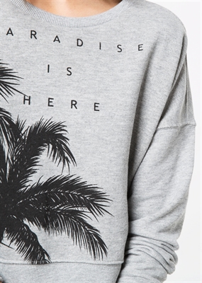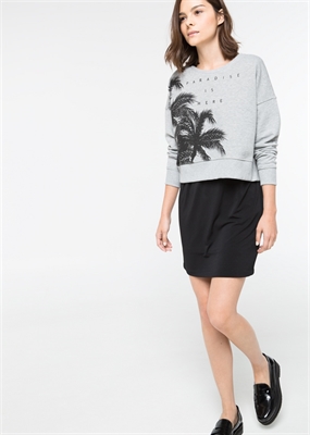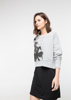 Sudadera cropped en una mezcla de algodón con estampado en la parte delantera. Cuello redondo, costura del hombro caída, manga larga y terminaciones en canalé.