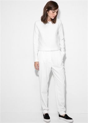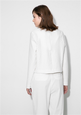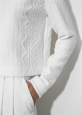 Sudadera cropped con textura confeccionada en una mezcla de algodón. Cuello redondo, manga larga, cierre de cremallera y gancho en la parte posterior.