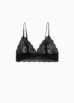 Sujetador triángulo de encaje con tirantes finos ajustables.
