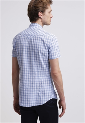 Largo:normalCierre:botónAncho de la espalda:44 cmModelo, altura:187 cm, lleva la talla MOcasión:tiempo libreEstampado:de cuadrosLargo de la prenda:77 cmCuello:kentLargo de manga:cortaMaterial exterior:100% algodónCuidados:no utilizar secadora, lavar a máquina a 30°C, programa delicadoNúmero de artículo:DI122D05W-K11