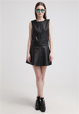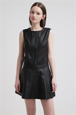 Largo:cortaRelleno:100% poliésterAncho de la espalda:40 cmModelo, altura:178 cm, lleva la talla 36Cuello/escote:cuello redondoEstampado:unicolorLargo de la prenda:82 cmDetalles:cremallera, enaguasLargo de manga:sin mangasMaterial exterior:100% cueroCuidados:lavado de cuero profesionalNúmero de artículo:JM221C000-Q11