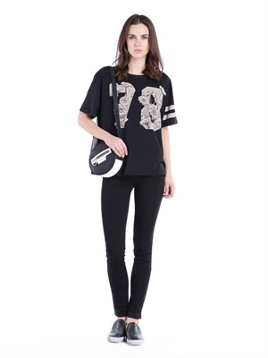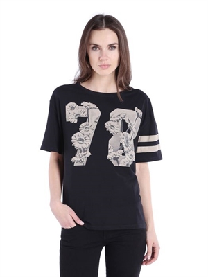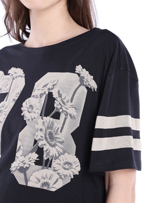 Scoop neck, short sleeves, digital print to chest, sleeves details.