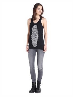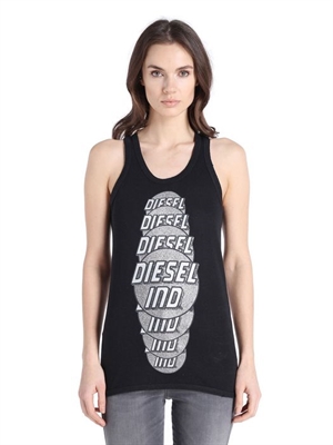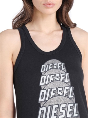 Loose cotton jersey tank top with glitter-printed Diesel logo.