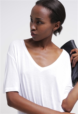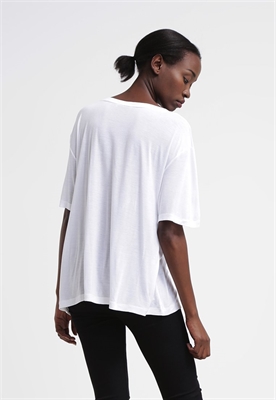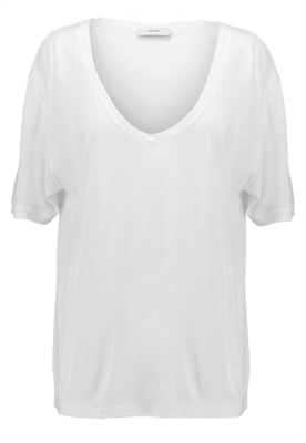 Largo:largoAjuste:anchoMaterial/composición:jerseyModelo, altura:178 cm, lleva la talla SCuello/escote:en V pronunciadoEstampado:unicolorLargo de la prenda:62 cmTransparencia:poco transparenteLargo de manga:cortaMaterial exterior:100% viscosaCuidados:no utilizar secadora, lavar a máquina a 30°C, programa delicadoNúmero de artículo:DI121D05F-A11