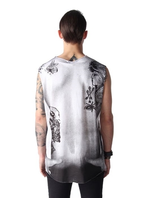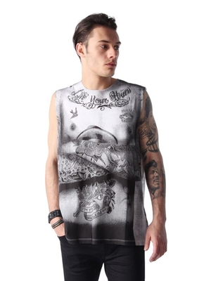 A fashion tank top with a graphic tattoo print.Crew neck, sleeveless, digital print to chest and back.