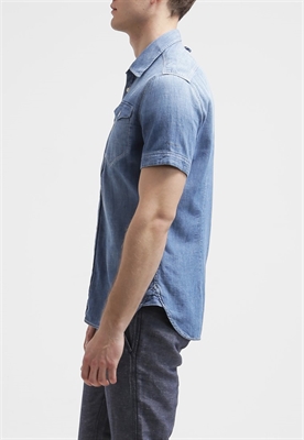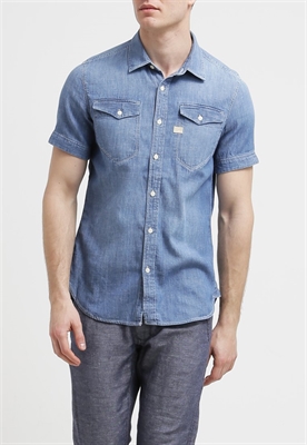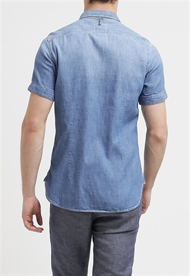contiene partes no textiles de origen animalLargo:tres cuartosAjuste:slim fitCierre:botónMaterial/composición:vaqueroAncho de la espalda:42 cmModelo, altura:188 cm, lleva la talla MEstampado:unicolorLargo de la prenda:76 cmCuello:kentLargo de manga:cortaMaterial exterior:100% algodónCuidados:no utilizar secadora, lavar a máquina a 30°CNúmero de artículo:GS122D0AA-K12