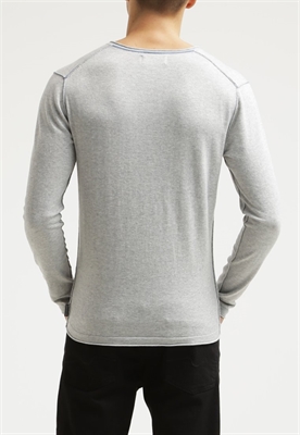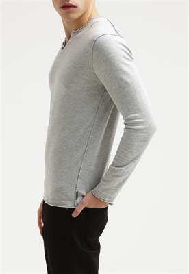 Largo:normalModelo, altura:185 cm, lleva la talla MCuello/escote:henleyEstampado:jaspeadoLargo de la prenda:66 cmLargo de la manga:63 cmLargo de manga:manga largaMaterial exterior:100% algodónCuidados:no utilizar secadora, lavar a máquina a 30°C, programa delicadoNúmero de artículo:HA922Q011-C11