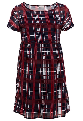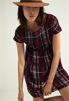 Largo:cortaAjuste:anchoModelo, altura:180 cm, lleva la talla 34Cuello/escote:cuello redondoEstampado:de cuadrosLargo de la prenda:83 cmDetalles:enaguasLargo de manga:cortaMaterial exterior:100% poliésterCuidados:no utilizar secadora, lavar a máquina a 30°C, encoge un 5%Número de artículo:NM321C017-K11