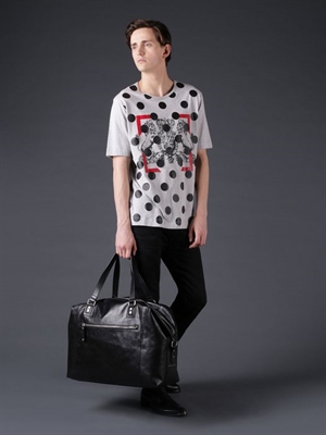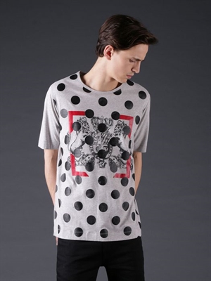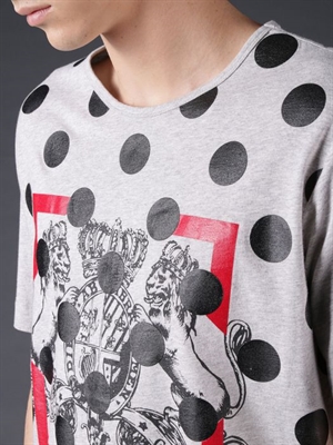 Diverse print techniques are used to achieve a distinctive look on this boxy fit T-shirt.