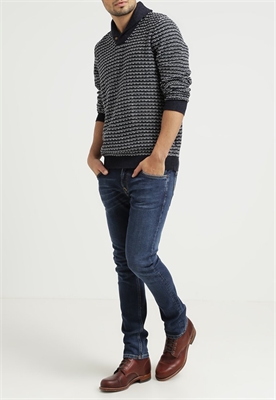 contiene partes no textiles de origen animalLargo:normalAjuste:slim fitLargo entrepierna:78 cmMaterial/composición:vaqueroModelo, altura:187 cm, lleva la talla 32x32Largo exterior de la pierna:102 cmCierre:cremallera invisibleBolsillos:traseros, lateralesEstampado:unicolorCintura:normalMaterial exterior:98% algodón, 2% elastanoNúmero de artículo:NU222G01F-K11